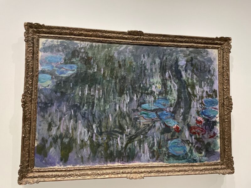 晩年の絵は作品集などの出版物ではあまり目にしないのと、実物からしか感じられないものもあるので伝わりにくいと思うのですが、一般的にイメージするモネの睡蓮の空気感とはまた違うのでこの写真を参考にすると少しわかりやすいかもしれません。